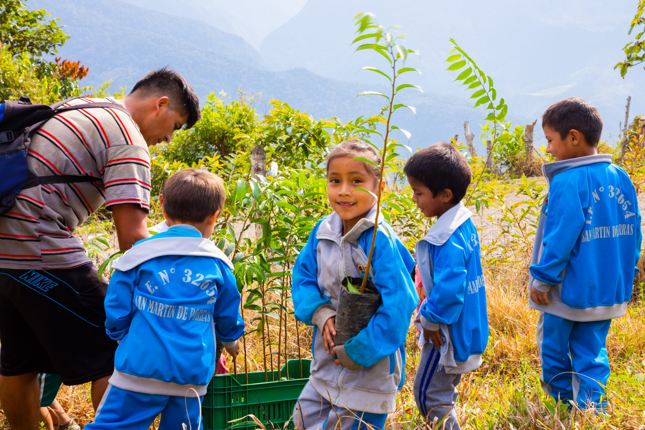 Visitamos los colegios que se ubican al interior de las áreas de influencia (AID) de la Central Hidroeléctrica Chaglla y sus dos líneas de transmisión con el fin de sensibilizar a los niños en la importancia de la protección ambiental, reducción en el consumo de plástico y segregación de residuos. También sembramos con ellos plantones de árboles propios de la zona.